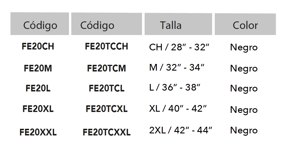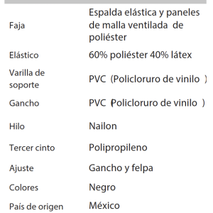Faja de soporte sacrolumbar con malla ventilada en paneles frontales y espalda elástica, cinturón elástico sobrepuesto que provee soporte adicional alrededor del área abdominal.